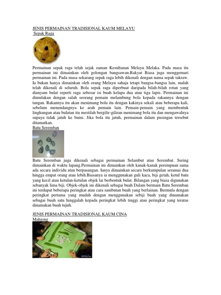 Di sini merupakan gambaran serba sedikit informasi tentang permainan tradisional di malaysia. Permainan ini dimainkan di dalam rumah. Antara permainan tradisional yang terkenal di malaysia termasuklah permainan congkak, permainan wau, permainan gasing, permainan batu seremban dan sepak raga. Alat yang diperlukan ialah lima butir batu kecil. Ia merangkumi semua permainan suku kaum di malaysia dan luar malaysia. Posted by unknown at 23:43. Banyak sekali warisan budaya yang mengandung nilai luhur dan patut untuk dilestarikan. Namun tidak ada sebarang usaha set produk edukit permainan tradisional ini didatangkan bersama peralatan permainan, dvd kaedah permainan dan manual rujukan guru. Antara permainan tradisional yang terkenal di malaysia termasuklah permainan congkak, permainan wau, permainan gasing, permainan batu seremban dan sepak raga. Terdapat pelbagai jenis gasing di malaysia seperti gasing jantung, gasing piring atau leper, gasing kelamar, gasing telur, gasing berembang, gasing melayu, gasing cina, gasing buku benang dan. 10 permainan tradisional malaysia yang semakin dilupakan. Jus oren 9.778 views11 months ago. Video ini dibuat sempena tugasan berkumpulan bagi subjek hubungan etnik (sadn 1043).
