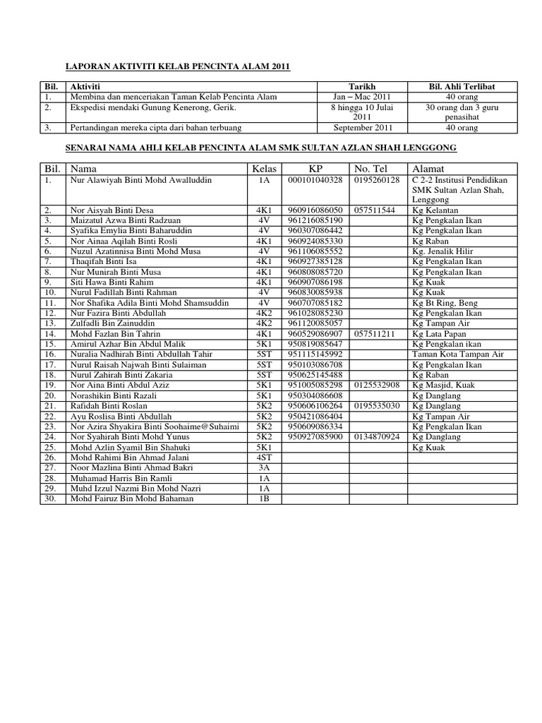 Aktiviti Kelab Pencinta Alam : Smk a tun ahmad zaidi.. Smk a tun ahmad zaidi. Savesave aktiviti kelab pecinta alam.docx for later. Jangan lupa share kepada kawan2 ya pada group whasapp dan telegram.klik sahaja button share tersebut. Hopefully, kelab pencinta alam akan terus maju dan mengadakan pelbagai aktiviti kelak ! Melahirkan kesedaran bahawa pentingnya menjaga alam sumber utama kewangan kelab adalah melalui derma yang ditetapkan.