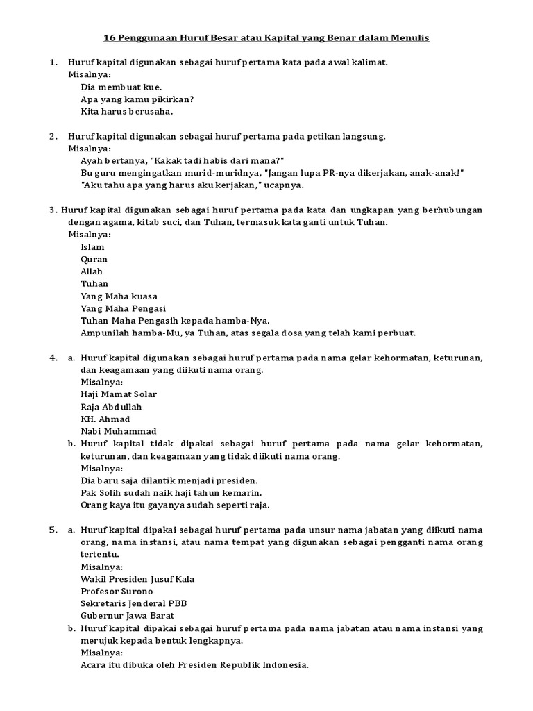 Penulisan Huruf Kapital Huruf Besar Contoh Garam Inggris Kacang Bogor Pisang Ambon 10 Huruf Pdf Document from static.fdokumen.com Huruf kapital tidak dipakai sebagai huruf pertama nama jabatan dan pangkat yang tidak diikuti nama orang, atau nama tempat. 7 tempat dengan nama terpanjang di dunia. Jika tidak tahu atau lupa, jangan bersedih atau stres. Seperti yang diketahui, penggunaan huruf kapital juga berlaku bagi nama tempat atau lokasi geografi. Semoga si manja akan membesar dan membanggakan mama dan papa dengan nama yang dipilih. Kebanyakan å tersebut merupakan nama desa di wilayah eropa seperti norwegia, denmark, dan swedia. Nanti malam, kata ibu, mereka akan tidur di sini.. Huruf kapital digunakan pada huruf awal kalimat.